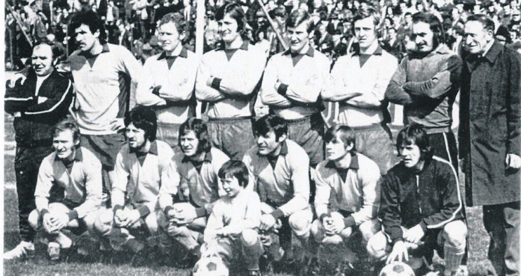 Bacuzzi avait une présence singulière, en capitaine, lorsqu’il guidait les siens hors du petit vestiaire blotti dans un coin de Flower Lodge, il dégageait une impression de maîtrise totale. Autour de lui, l’équipe se structure avec des talents comme Miah Dennehy, John Lawson, Donie Wallace et Walter “Sonny” Sweeney, et impose un football offensif qui séduit le public. En 1971, les Hibs remportent enfin leur premier titre de champion, au terme d’un match de play-off gagné face aux Shamrock Rovers. Leur rêve de doublé s’éteint en demi-finale de la FAI Cup après une défaite surprise contre Drogheda, mais le club s’impose désormais comme une puissance du championnat. La saison suivante, l’apogée se dessine avec pour débuter une aventure Européenne en C1. Tirés face au Borussia Mönchengladbach, les Hibs accueillirent à Cork les étoiles du football ouest-allemand : Netzer, Heynckes, Vogts. Habitués à voir leurs héros dominer à domicile,les supporters furent pétrifiés devant la démonstration : un 5-0 sans appel, Netzer découpant la défense de passes millimétrées comme ils n’en avaient jamais vues. Le retour fut moins sévère une défaite 2-1 mais ponctuée d’un but de prestige signé Dennehy.