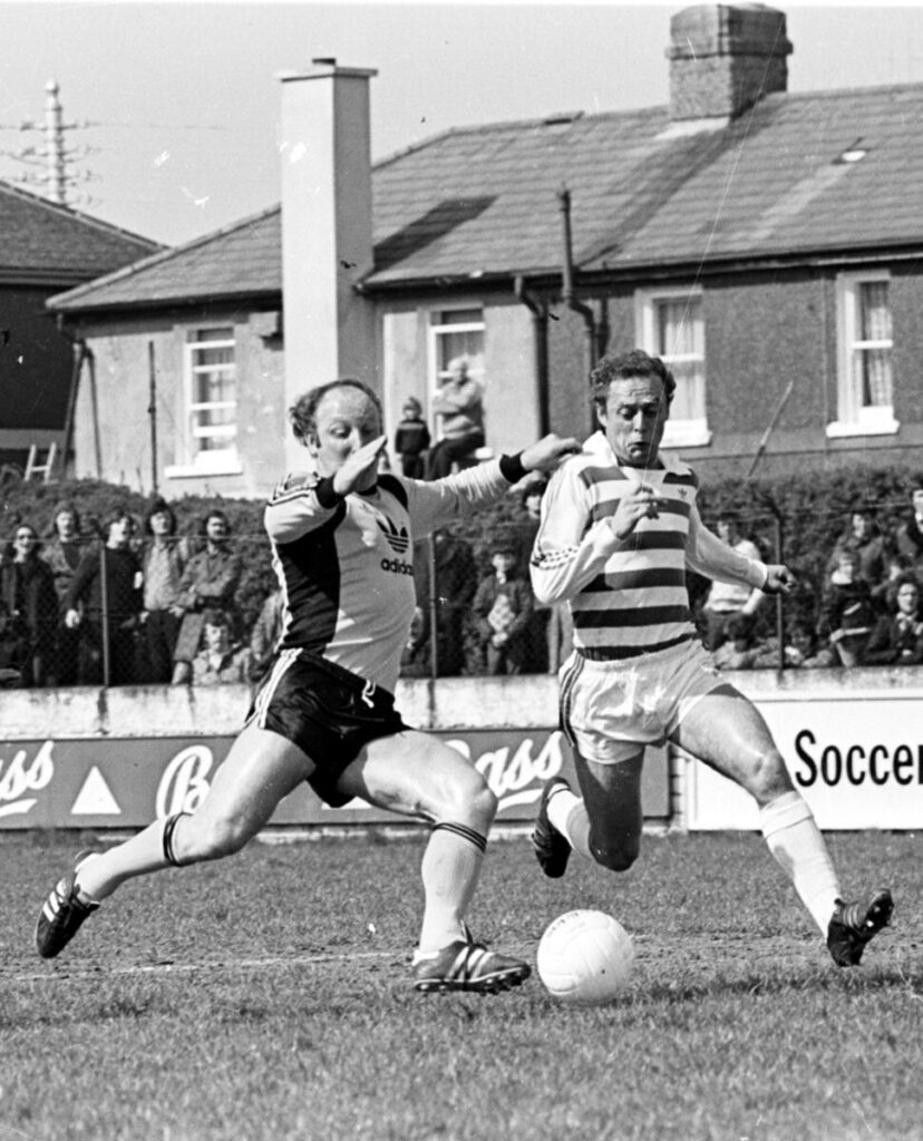 À partir de 1970, les Hibs entrent dans leur âge d’or en attirant depuis Reading un homme qui allait marquer l’histoire du club : Dave Bacuzzi. Nommé joueur-entraîneur, il arrivait auréolé d’un prestigieux parcours en Angleterre, où il avait évolué en First Division – l’actuelle Premier League – sous les couleurs d’Arsenal et de Manchester City. Pour les supporters de Leeside, qui jusque-là n’avaient connu les stars britanniques qu’à travers Match of the Day, c’était comme voir débarquer une figure de cinéma sur leur pelouse. Mais au départ, Bacuzzi crut qu’on l’invitait à un improbable voyage sous les tropiques : le télégramme qu’il reçut était mal orthographié et lui demandait de contacter… « Cork Island » au lieu de Cork, Ireland. Une confusion cocasse, qui prêta à sourire, avant de déboucher sur l’aventure la plus marquante de sa carrière.