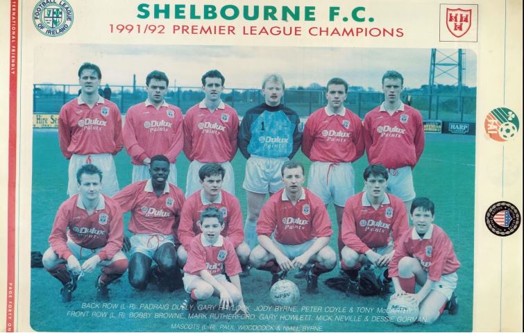 Après plus de vingt ans dans l’ombre, les nuages commencent enfin à se dissiper. Les Reds quittent le dégradé Harold’s Cross Stadium pour s’installer définitivement à Tolka Park et sortent lentement de décennies d’errance sportive. Le tournant décisif survient en 1988 avec la nomination de Pat Byrne au poste d’entraîneur-joueur. L’ancien international irlandais insuffle une énergie nouvelle au club et pose, patiemment, les bases d’une équipe ambitieuse. Derrière lui, un homme de l’ombre mais déterminant, Tony Donnelly, nouveau propriétaire, commence à investir massivement dans les structures et le recrutement. Tolka Park devient peu à peu le symbole du renouveau des Shels. Quatre ans plus tard, le travail porte ses fruits : Shelbourne remporte le championnat 1991-92, son premier titre en 30 ans. La victoire 3-1 à Dundalk, sur un but de génie de Brian Flood – une frappe somptueuse de 35 mètres – entre dans la légende. Cette même saison, les Reds alignent un effectif solide, porté par Garry Haylock, meilleur buteur avec 13 réalisations. Ce titre ouvre à nouveau les portes de l’Europe à Shelbourne. L’été 1992, le club découvre la Coupe des clubs champions européens et affronte les Ukrainiens du Tavriya Simferopol. Un match nul à Dublin (0-0) puis une courte défaite 2-1 à l’extérieur, malgré un but de Dully, marquent le retour du club sur la scène européenne après 21 ans d’absence.