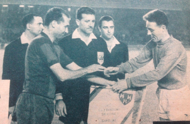 L’année suivante, en Coupe des vainqueurs de coupe, l’adversaire est prestigieux, le FC Barcelone. L’annonce du tirage fit l’effet d’un petit séisme à Dublin : « Shelbourne draw Barcelona », titraient les journaux. Freddy Strahan apprit même la nouvelle en allant acheter son journal du matin! Le 24 septembre 1963, Dalymount Park vibra sous l’assaut catalan. Doyle, nerveux, attendait Hennessy, retenu au travail, et qui débarqua à la hâte trente minutes avant le coup d’envoi. Les portes furent défoncées par la foule tant la ferveur était grande. Shelbourne, héroïque, tint tête avant de s’incliner 2-0, Chus Pereda — futur héros du titre européen de l’Espagne en 1964 — scellant le score. Nous sommes maintenant trois semaines plus tard et Gerry Doyle fait quelques jongles sur la pelouse du Camp Nou. Lui et ses « Boys » sont les premiers Irlandais à fouler une pelouse qui deviendra mythique. À la 29e minute, Joe Wilson est fauché dans la surface. Le défenseur Paddy Bonham transforme le penalty, offrant à Shelbourne son tout premier but européen. Les Irlandais mènent 0-1 à la surprise générale. Les Catalans égalisèrent 8 minutes plus tard par Sandor Kocsis, légende des Mighty Magyars, puis l’emportèrent 3-1 grâce à deux buts en fin de partie. Les Irlandais, trop pauvres pour offrir leurs maillots en souvenir, serrèrent simplement les mains adverses avant de rentrer à Dublin.