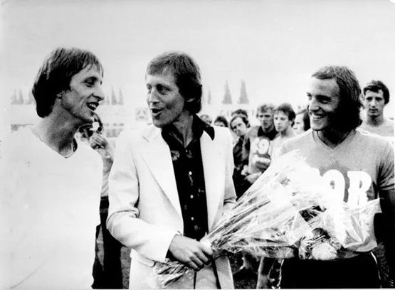 Et cadet de quelques semaines du dieu Johan, Reinier Johannes Maria Rijnders, dit « Nico », d’y balayer comme de coutume, avec l’énergie débridée qui le caractérise, le moindre pouce carré du sacro-saint gazon londonien… Ajax l’a acheté deux ans plus tôt aux Go Ahead Eagles de Deventer, pour la coquette somme de 400.000 florins, et Ajax ne l’a jamais regretté : auteur de 4 buts en 53 rencontres disputées, repris en Elftal dès ses 21 ans, le demi-récupérateur est rapidement devenu l’un des cadres du cercle amstellodamois, qu’il honore d’ailleurs ce soir encore de son indéfectible pugnacité…