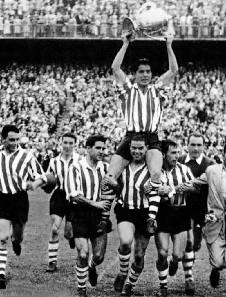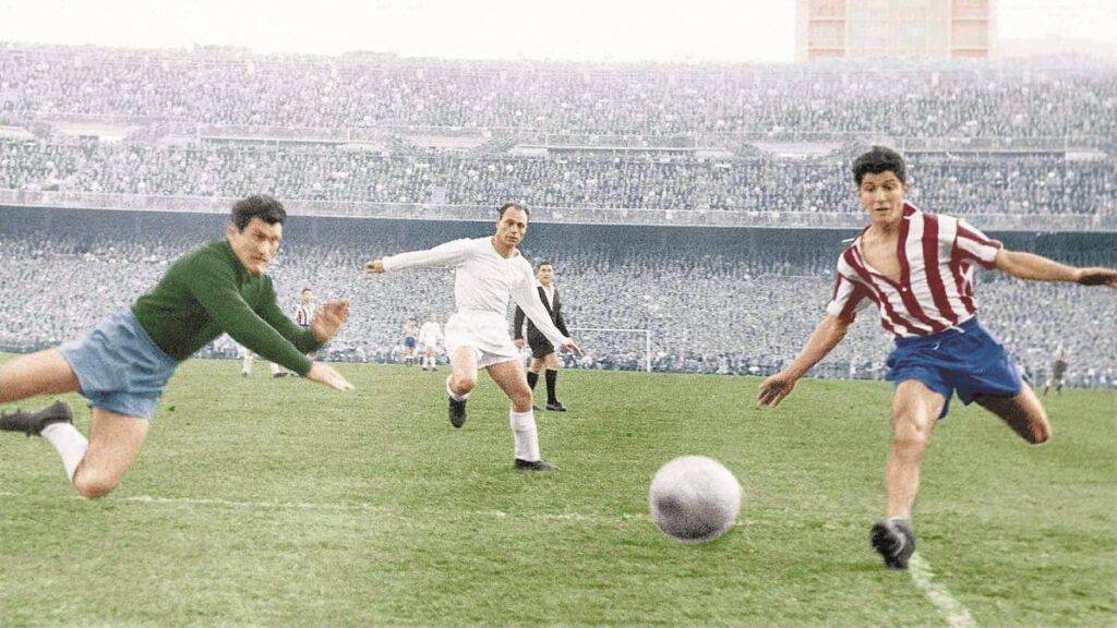 Collar et l’Atletico étaient faits pour s’entendre. Ayant quitté son Andalousie natale à 11 ans pour rejoindre les promesses de la Capitale, Enrique le teigneux rejoint l’Atletico trois ans plus tard, au moment où jaillit la première génération dominante des Colchoneros. Celle du maître tacticien Helenio Herrera et de Marcel Domingo, celle de delantera de cristal de José Juncosa, José Luis Pérez-Payá, Larby Ben Barek, Adrián Escudero et Henry Carlsson. A cette époque, le Real Madrid n’est que la cinquième roue du carrosse du foot espagnol, Collar s’imagine régner sur le Metropolitano, un rêve qui prend forme en 1952 lorsqu’il signe son premier contrat professionnel en échange de 15 000 pesetas. Jugé encore un peu vert, Enrique est envoyé en prêt à Cadix où il retrouve ses trois frères, Antonio, Juan et Pepe et obtient une promotion au second échelon, avant de parfaire sa formation du côté de Murcie qu’il aide à accéder à l’élite. Ayant furtivement goûté au strass de la Liga, Enrique est désormais prêt à affronter la rudesse des défenseurs espagnols.