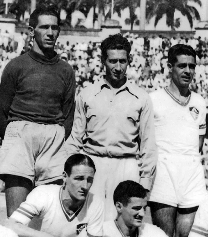 Dans le onze de Flu de 41, on note Renganeschi. Armando de son prénom, un parcours étonnant. Argentin, il n’est pas vraiment connu dans son pays, pour ne pas dire: inconnu au bataillon. Mais au Brésil, il jouissait d’une excellente reconnaissance à son meilleur dans les années 40 comme défenseur. il fait partie de cette vague de joueurs argentins qui a évoluait au Brésil entre le milieu des années 30 et la fin des années 40 (voir article sur Doval).En Argentine,il est passé à Independiente au milieu des années 30, mais pas titulaire. Il a donc a trouvé le succès personnel à Fluminense. Puis à SPFC, où il fait équipe avec son compatriote Sastre. Par la suite, une longue carrière d’entraîneur bourlingueur principalement au Brésil toujours.