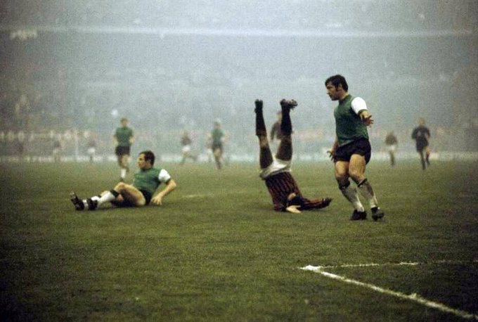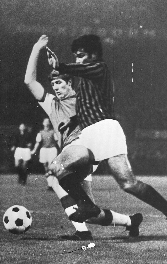 Après neuf minutes à peine à San Siro, la situation semblait pourtant non moins désespérée pour les hommes de Happel : dépassés par les événements dès l’entame de la rencontre, ils encaisseraient en effet bien vite un but du transfuge du Torino Nestor Combin, à la finition d’une action collective de toute beauté. Mais contrairement aux Ajacides, les Rotterdamois s’adapteraient. Qui en réduisant l’espace autour du stratège transalpin Gianni Rivera parviendraient même à sauver les meubles, et à ne rentrer en Hollande qu’avec un seul but de retard.