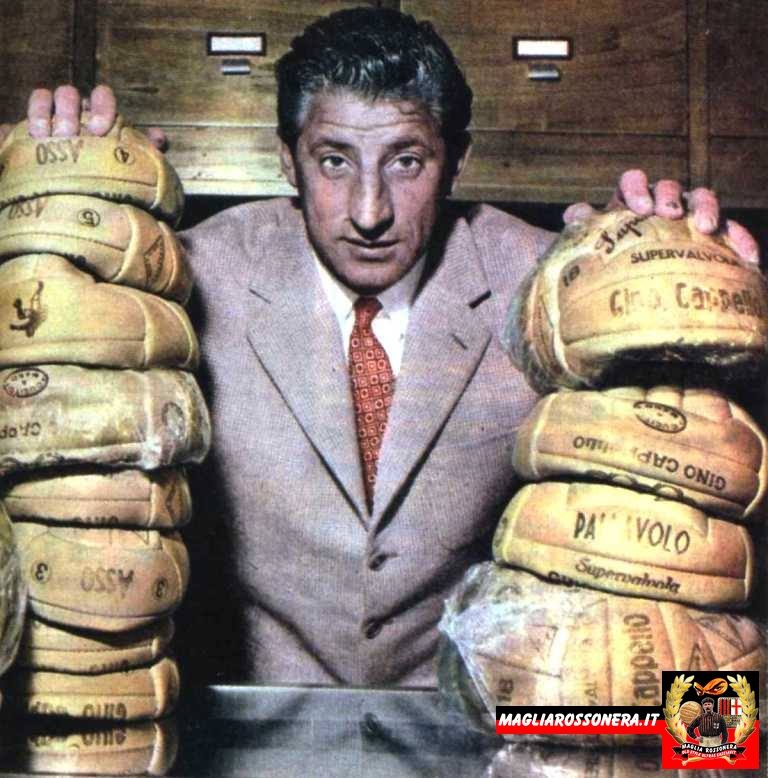 Gino Cappello – Capèo en dialecte vénitien – naît en 1920 dans un milieu ouvrier de Padoue. Adolescent, il évolue au sein de l’équipe d’un Gruppo rionale fascista, un des quartiers futuristes créés par Quirino De Giorgio au cours des années 1930. Attaquant technique et puissant, son jeu attire l’œil des recruteurs de l’Associazione Calcio Padova, avec laquelle il effectue ses débuts professionnels à 18 ans, puis l’AC Milan le choisit pour seconder Giuseppe Meazza, transfuge déclinant de l’Ambrosiana. Sélectionné avec les espoirs italiens en 1942, Capèo emprunte une trajectoire linéaire vers les sommets que la guerre vient brutalement percuter. Quand l’Italie sort du chaos, le destin l’envoie à Bologne dans le cadre d’un échange avec le bomber rossoblù Héctor Puricelli, un peu trop accommodant avec les thèses du Duce pour jouer dans une ville redevenue communiste.
