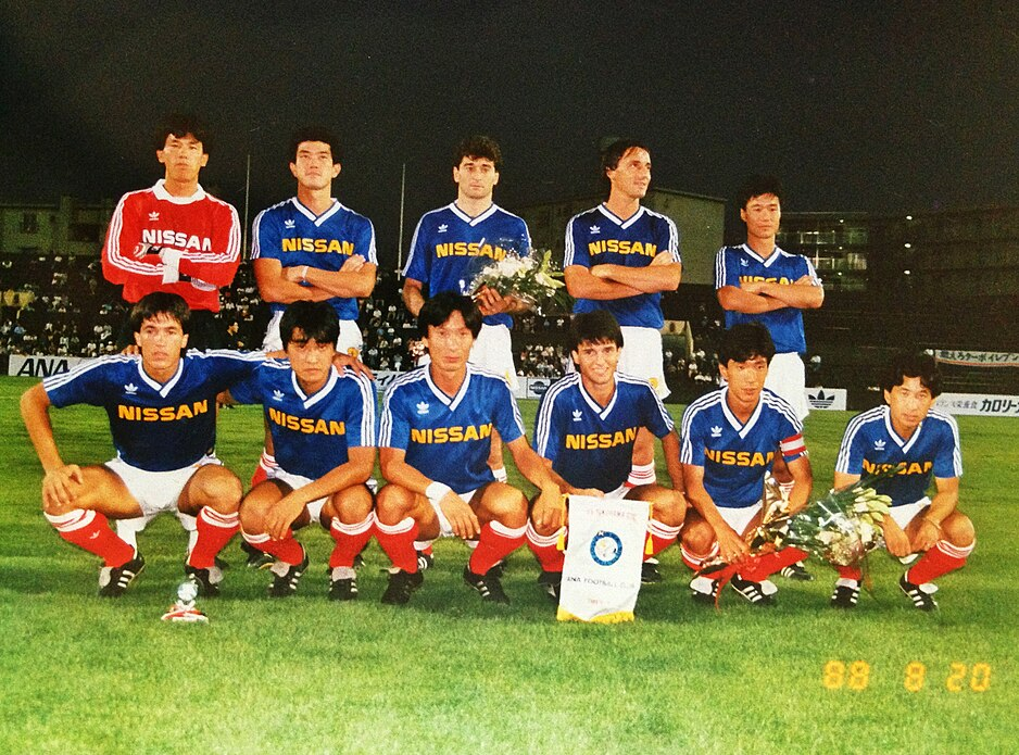 Lorsque la J. League, un nouveau championnat entièrement professionnel, est créée en 1993, Nissan et ANA figurent logiquement parmi les 10 invités à rejoindre cette nouvelle ligue et à transformer l’identité de leur équipe. Nissan, en toute logique, se base à Yokohama et fonde les Marinos, un nom fidèle à la longue histoire portuaire de la ville.