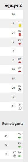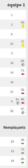 Pour vous aider je vous donne la composition de match sans les noms (sinon c’est vraiment trop facile). Il y a également les buteurs et les cartons. Bon courage!