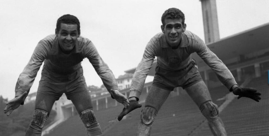 Dans le portrait consacré à Gilmar pour les besoins du Top 10 Corinthians, nous concluions l’article en commentant les célèbres photos du grand gardien prises dans les instants ayant suivi le triomphe brésilien sur la Suède en finale de Coupe du monde 1958. Nous nous émerveillions à propos de la silhouette et du visage du goleiro, statue de commandeur, autorité morale sur l’épaule duquel Pelé avait déversé son trop-plein d’émotions. Pourtant, la titularisation de Gilmar en équipe nationale fut longue à se dessiner. Et en termes d’exemplarité, nous savons désormais que son après-carrière n’a probablement pas été exempte de bassesses.