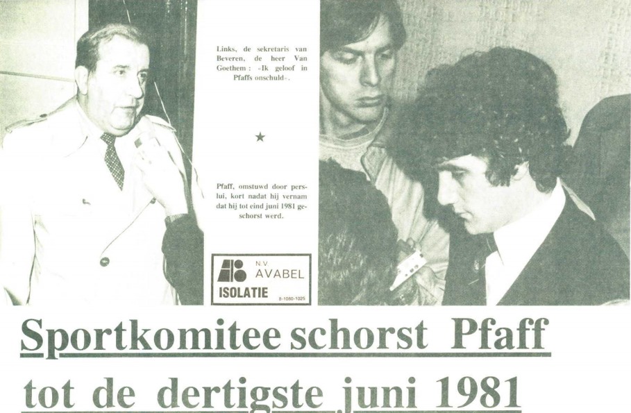 Toute l’affaire, au fond, avait probablement débuté quinze mois plus tôt, quand le 11 mars 1981 le Lokeren de Lato et de Lubanski s’était qualifié contre le Beveren de Pfaff et de Janssens, pour une place en demi-finale de la Coupe de Belgique. Et quand bien même rien de particulier ne semblait avoir troublé le déroulement de ce derby, l’arbitre rédigerait bientôt un rapport à l’encontre de Jean-Marie Pfaff, accusé d’avoir porté un coup de genou à l’arbitre assistant Thirion, lors de la rentrée aux vestiaires… Prestement convoqué, Pfaff serait aussitôt suspendu pour six mois fermes. Une sanction d’autant plus sévère qu’avant lui, et déjà abusivement, seul le Standardman Roger Claessen avait été suspendu pour davantage de temps, et que de l’avis général le très candide Jean-Marie Pfaff n’avait rien eu à se reprocher :