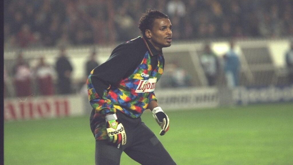 Les années 1990, la Division 1 de Guy Roux et Jean-Claude Suaudeau, les soirées européennes sur TF1 avec Roger Zabel et les Bleus qui remontent la pente au fil de la décennie, le football français vivait bien. Et côté gardiens, la France a, pour une fois, plusieurs portiers de haut niveau. Parmi eux, Bernard Lama et son style inimitable. « Le Chat » comme on le surnomme, pour son style aérien et souple, en un mot : félin. Une détente magnifique et des parades spectaculaires, des sorties aériennes tout en contrôle, fort dans les duels et à l’aise balle au pied, Lama a marqué les esprits au plus haut niveau. Il était imprégné des influences sudaméricaines depuis sa Guyane natale. Il a pu copier les gardiens latinos qu’il voyait à la télé brésilienne : dribbler, sortir de sa surface, participer au jeu, tirer les coups de pied arrêtés et les pénos – il en mettra quelques-uns dans sa carrière. Il avait aussi une technicité balle au pied bien au dessus de la moyenne pour son poste, une qualité qu’il avait développée sur les plages guyanaises après l’école.