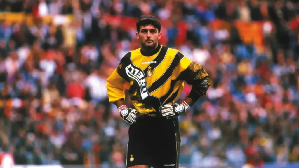Maillot bariolé aux manches retroussées et parfois le col remonté, le style de Pagliuca tapait à l’oeil au moment où le football est devenu de plus en plus télévisuel et marketing. Au-delà de son look très années 1990, il était un gardien de but complet et moderne, notamment pour son jeu au pied de grande qualité, un véritable atout dans un football en transformation. En effet, après un Mondial italien 1990 un peu trop insipide et jugé défensif, le Board de la FIFA introduisit la règle de la passe en retrait. Les gardiens ne pouvaient plus se saisir du ballon avec les mains sur une passe volontaire de leurs coéquipiers. Un changement de règle qui favorisa le jeu au pied des gardiens, même si ce n’était pas nouveau pour eux. Des exemples de gardiens qui sortaient de leur surface et qui participaient à la relance et à la construction du jeu, nous en avons plusieurs exemples dans l’histoire du football, bien avant les années 1990. Mais cette remise au goût du jour du jeu au pied entraîna la diffusion de l’appellation « gardien libéro » pour les qualifier et Pagliuca fut parmi ceux-là, et fut considéré comme l’un des modernisateurs de sa génération. Au delà de ça, Pagliuca c’était aussi des arrêts et des parades spectaculaires, grâce à son agilité et une très bonne détente.